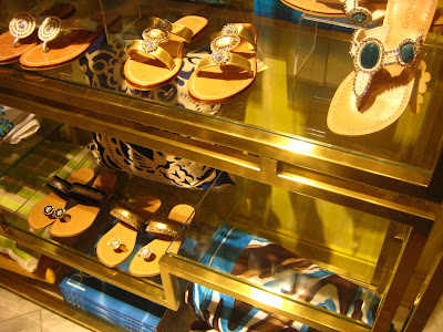This here is the cool colored shelving display. The blues, greens and brown all made me feel like I was on an Island in Greece. There were so many decadent sandals that made your feet cry out for a pedicure.