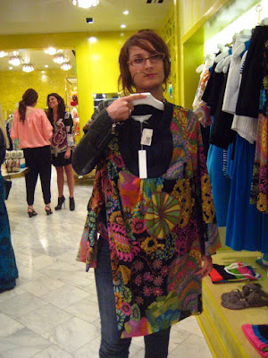 When I arrived at Fashion Island the place was desolate and it was only 7pm. Where were all of the people? I thought to myself...hmm maybe they are all visiting Trina Turk right now just like I'am? As a walked towards the store my excitement was felt though out and my sister was getting a bit embarrassed and didn't want to go inside the store with me. This is not unusual behavior for her, she is one of those people who we will call a flake. I know plenty of people who would have taken her place to go with me.